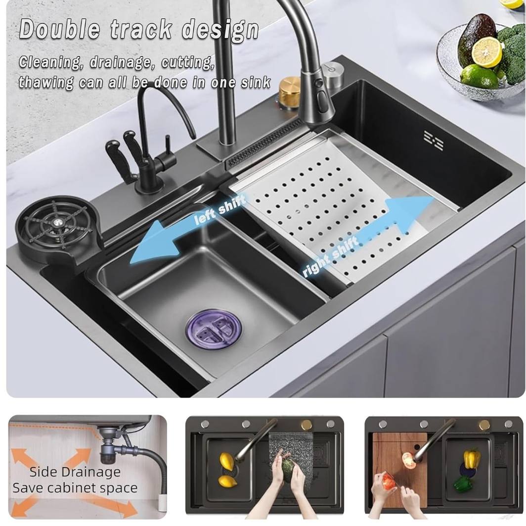Bring a touch of modern luxury to your kitchen with our Waterfall Kitchen Sink, featuring smooth, flowing lines that mimic the graceful cascade of a waterfall. Handcrafted from premium materials, this sink combines eye-catching design with durable performance.